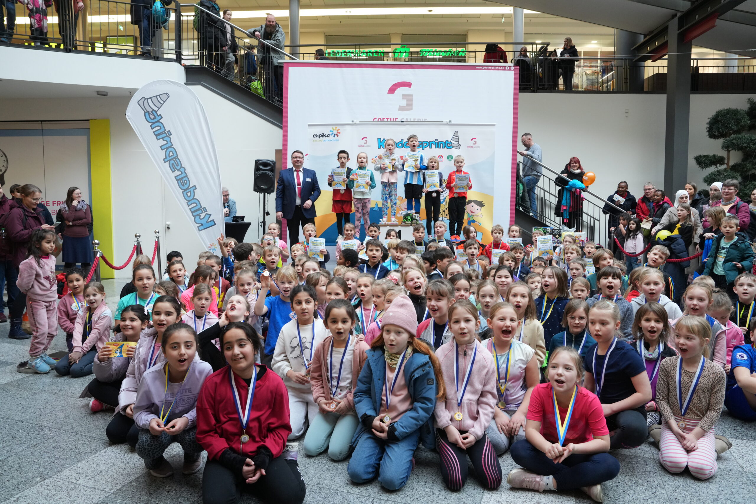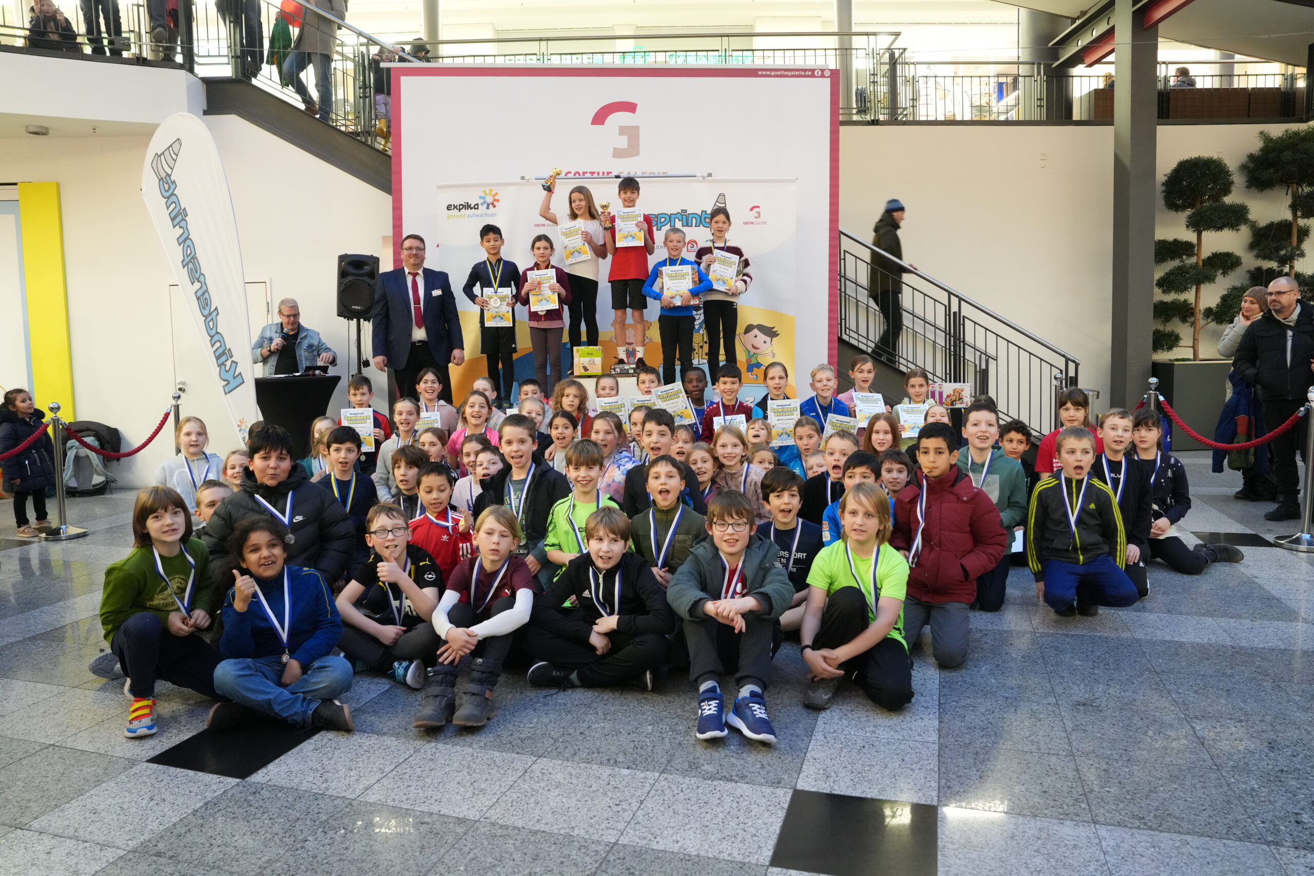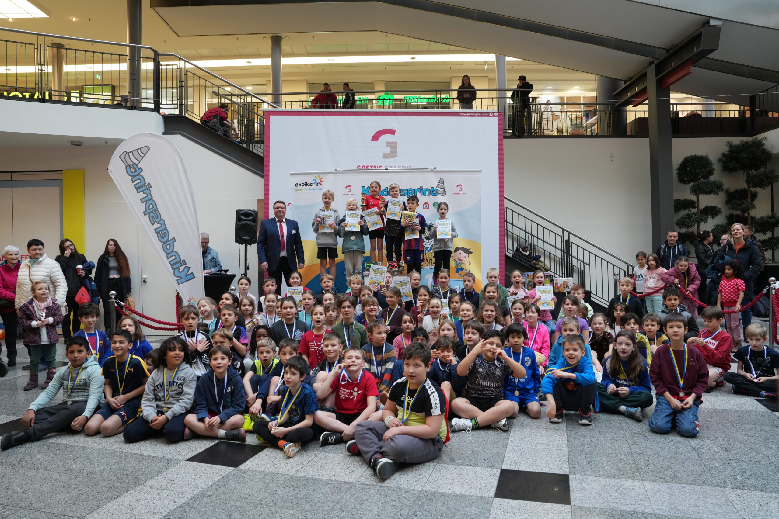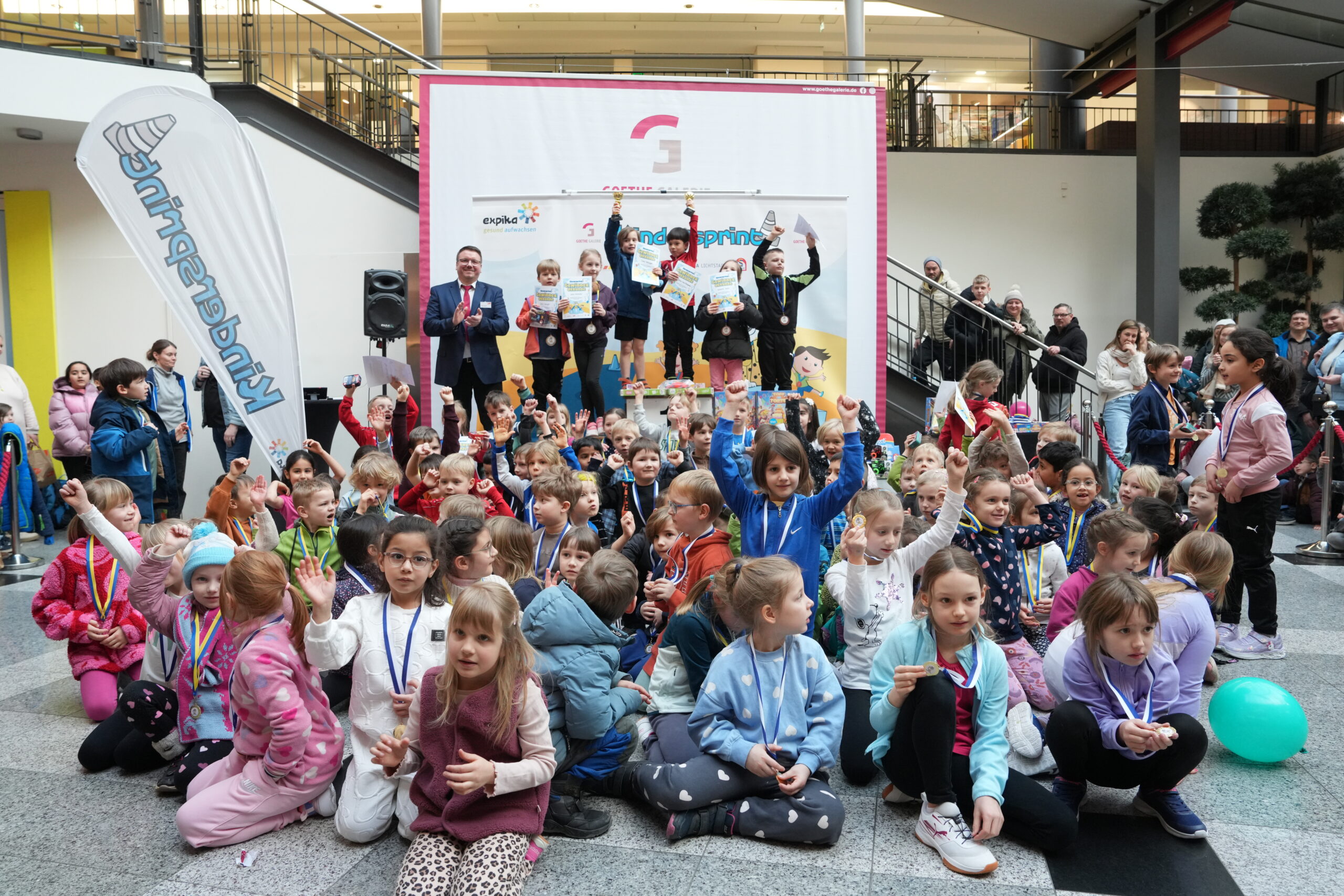 Als besonderes Highlight stellt die Goethe Galerie Jena der Grundschule am Rautal Jena eine Sportmaterialkiste für eine nachhaltige Pausengestaltung zur Verfügung. Diese Schule war, gemessen an der Schülerzahl, am stärksten beim „Kindersprint-Endspurt“ vertreten.